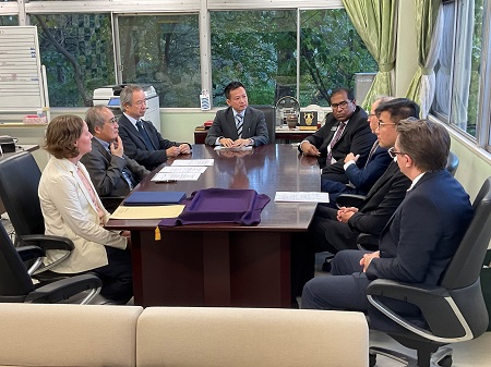 2024年11月7日、本学の学生交換協定校であるカナダのレジャイナ大学からJeff Keshen学長が来学されました。杉本義行学長、川﨑恭治副学長および黒木セーラ特別任用准教授と懇談し、今後の両大学の交流のさらなる発展の可能性について話し合われ、覚書(Memorandum of Understanding)の合意に至りました。