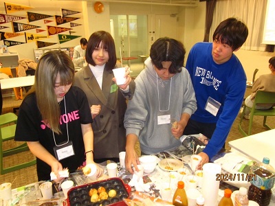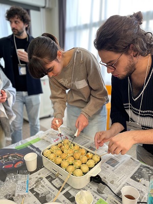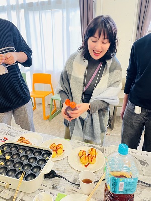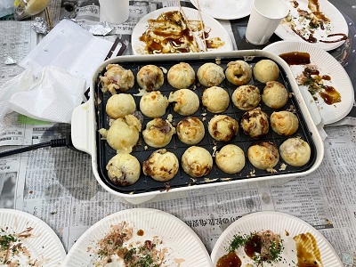 たこ焼きを作ったり、食べたりしたことがない留学生もいましたが、たこ焼き器を使って自分で調理したり、具材を自分の好きな物にアレンジしたり、みんなでたこ焼きを食べながらビデオゲームをしたりと、参加者から楽しかったと喜ばれました!