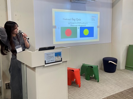 ミニゲームでは、国旗当てゲームを行いました。留学生の出身国に関する問題の他、いくつか難易度の高い問題も用意したため、正解者が出ると盛り上がっていました。