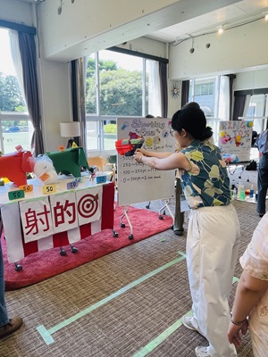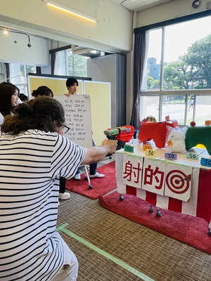 射的では、狙いを定めて当てる楽しさを味わいました。得点に応じた景品を用意されており、留学生も真剣な表情でチャレンジする姿が見られました。