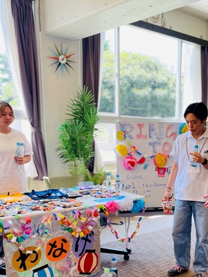 輪投げは、一見簡単そうなシンプルなゲームですが、コツを掴むまでが難しく、悔しい表情も見受けられましたが、成功を共に喜び合える、交流のきっかけにもなりました。