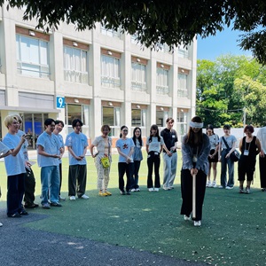 夏の風物、スイカ割りは声を出し合いながらスイカを目掛けて1発!留学生にとっては、初めての体験でありながら、皆さんの声援のおかげでしっかりと的を捉え、大成功でした。また、美味しいスイカを全員でいただくことができました。
