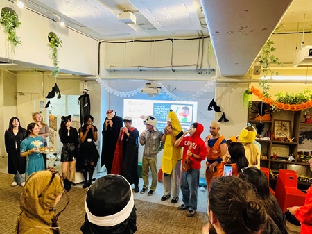 10月24日(金)にハロウィンパーティーを開催し、約50名が個性的な仮装をして集まりました。今回のイベントは異文化交流を行うために企画しました。