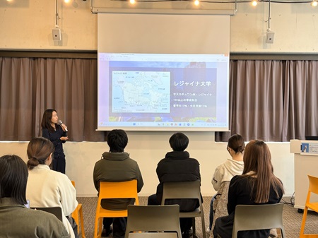 今年はアメリカ・カナダ・イギリス・ベルギー・フランス・中国・韓国など、多様な協定校へ留学した先輩が登壇し、長期留学の魅力や実体験を語ってくれました。