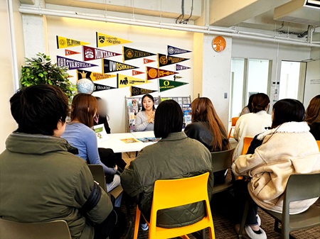 会場では個別相談の時間も設けられ、先輩たちが自身の体験をもとに、留学を目指す後輩の質問に丁寧に応じていました。「現地の授業についていくためにどんな準備をしたか」「ルームメイトとの共同生活で困ったことはあったか」など、実践的で具体的な相談や質問が多く寄せられ、参加者にとって留学生活をより鮮明にイメージできる貴重な機会となりました。
