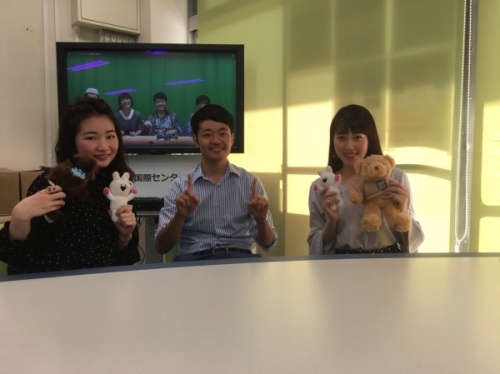 余談ですが、MCが持っているぬいぐるみはアメリカ・コロラド大学のマスコットキャラクターと中国・復旦大学のクマです。国際センターにおいてあるので探してみてくださいね。