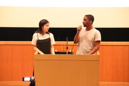 講演会中もウヤンガさんの側にはダナウェイが寄り添う