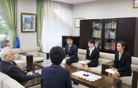 4年生2名、3年生1名の修了生を前に、戸部学長は「SIEPの立ち上げにかかわった一人としても大変うれしい。この経験を生かしてさらに成長してほしい。」とのお祝いの言葉を述べられました。修了生からは「SIEPの授業で学んだことは、留学中はもちろん、就職活動でも役に立った。」「これから留学に行くので、海外でしか学べないことをしっかり吸収したい。」といった感想や抱負が聞かれました。