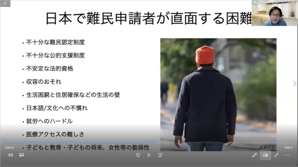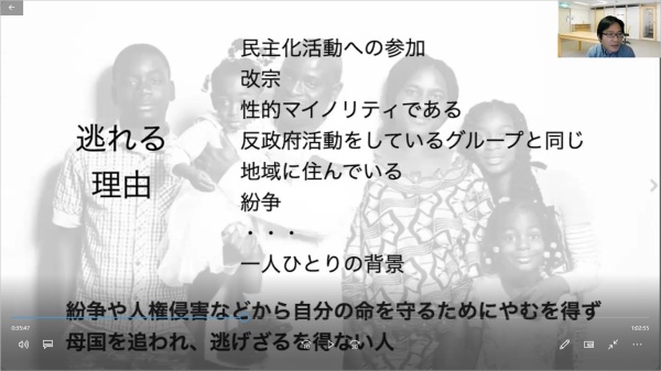 2020年度に日本で難民認定をされた方は「47名」のみだったことにふれ、日本での難民認定のプロセスの難しさや審査の厳密さについて説明されました。