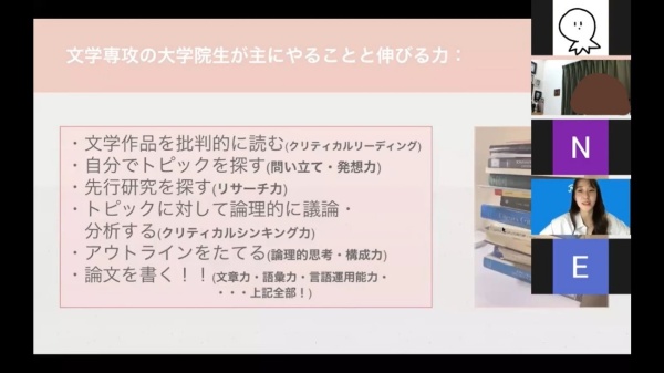 穴本玲奈さん(文芸学部英文学科2020年卒。文学研究科在籍中)
