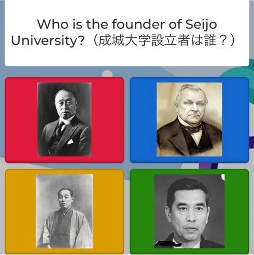 初めにKahoot!と呼ばれるオンラインツールで大人数が一度に参加できるクイズを全体で楽しみました。ちなみに、画像3枚目緑の枠の中の人物は、私がAIで作成した、この世に存在しそうでしない方です(笑)