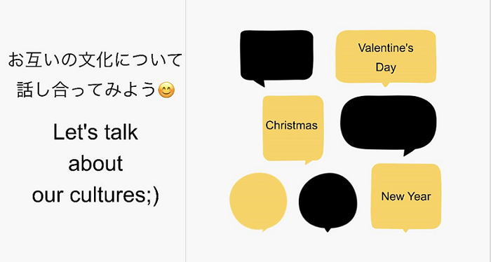 本イベントで1番工夫した点は、英語と日本語、両言語を使う量です。両大学の学生の要望に叶うよう、バイリンガルのパワーポイントを作成したり、英語タイムと日本語タイムを設けたりしました。そうすることにより、英語話者は日本語を学習することができ、また反対に日本語話者は英語を学習することができると考えました。