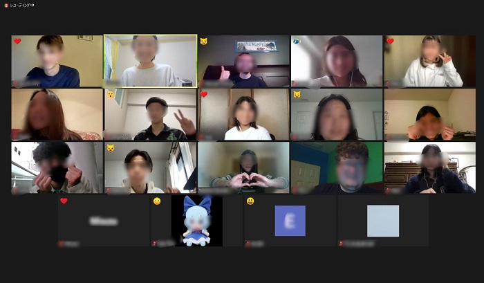 アイスブレーク後は、ブレークアウトルームに移動しワード・ウルフを日本語と英語で行いました。お題の1つ「目玉焼き」をアメリカではあまり食べないようで、どう説明するか苦戦している様子も見られましたが、終始楽しそうに質問し合っていました!
