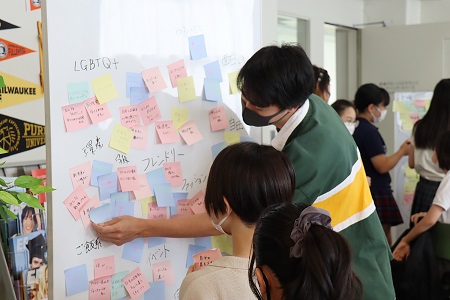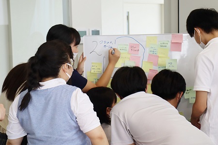 出てきた意見を同じような内容ごとにグルーピングする作業。みんな積極的に意見を出し合いながら進めていました