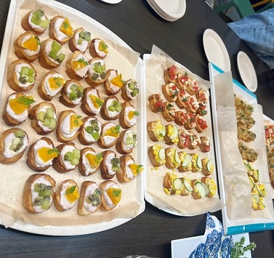 更に今回は、プラントベースプロジェクトのメンバーとコラボし、カナッペをお出ししました。学生ラウンジやSEIJOちかぱんの方々の協力もあり、いつも提供しているお菓子とドリンクだけでなく、フェアウェルパーティーにふさわしい豪華な食事を提供することができました。