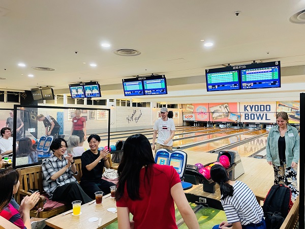 上手くピンを倒せ、同じレーンの人とハイタッチをしたり、失敗してしまった時も「惜しい!」などの声や笑いが起こったりと、ボーリングを通して仲が縮まっていくことを感じました。