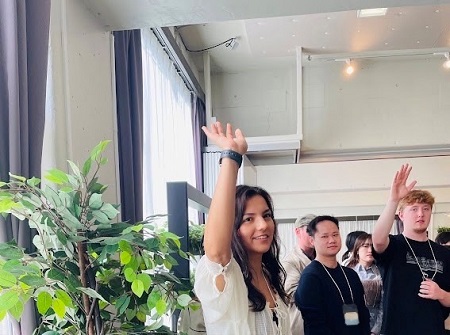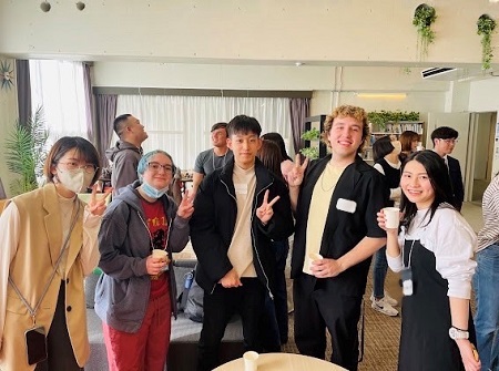 まず、留学生に一人ひとり簡単な自己紹介をしてもらいました。驚くことに全員が上手な日本語で、趣味や留学生活の意気込みなどを話していました。その後、参加者全員でミニゲームを2つ行いました。話さず、ジェスチャーだけで誕生日順に並ぶサイレント・バースデーゲームとイントロで曲名を当てるイントロゲームです。ミニゲームを通して、参加者の方たちの緊張も和らぎ、その後のフリートークも大変盛り上がっていました。