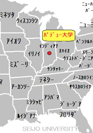 パデュー大学は、シカゴの南東 160km、インディアナ州の田園小都市ウエスト・ラフアイエットを中心に広がる米国でも屈指の名門総合州立大学です。卒業生から3名のノーベル物理学賞 受賞者を輩出し、また2010年度ノーベル化学賞を受賞した根岸英一博士を含む4名の研究者が同じく受賞者として列せられています。980ヘクタールに及ぶ広大なメインキャンパスには経営学部(会計学、経済学、経営学、工業経営学)、人文社会学部(人類学、芸術史、英語教育、映画・演劇製作、ファインアー ト、歴史学、人間関係、ジャーナリズム、法と社会、言語学、マスコミ、哲学、写真メディア、政治学、宗教学、演劇学、社会学ほか多数)を初め、理学部、工学部などの研究施設が点在する素晴らしい教育環境を誇っています。